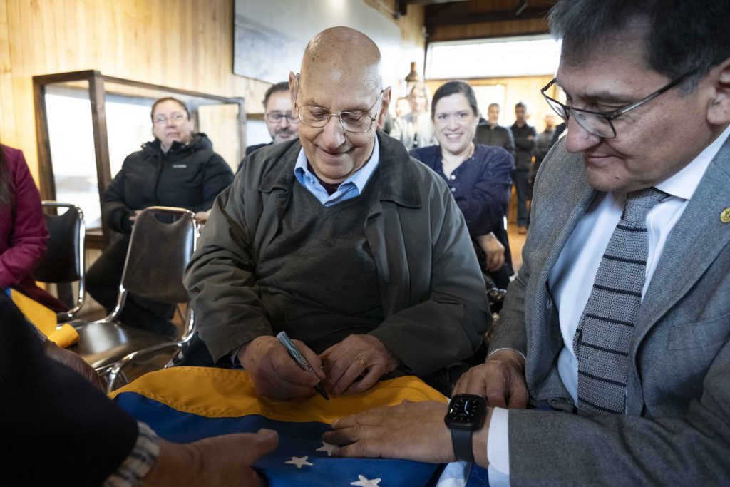 “Que él haya hecho el esfuerzo de venir aquí es realmente notable. Vemos que los años han pasado y su mente sigue mejor que la de muchos de nosotros. Lúcida, con recuerdos”, valoró el rector de la Universidad de Magallanes (UMAG), Dr. José Maripani Maripani. “Para que alguien se quiera quedar en un lugar, tiene que quererlo. Y para que uno lo quiera, tiene que conocer también la historia”, agregó.