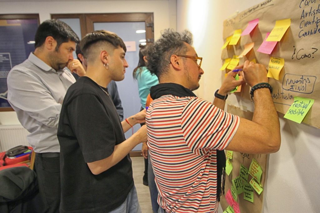 Al día siguiente, la delegación realizó en las dependencias de la Seremi de las Culturas, las Artes y el Patrimonio en Coyhaique el taller “Hacia un modelo de residencia de arte y ciencia”, en donde participaron artistas, gestores/as culturales, profesionales y académicos de la UAysén. Mediante una dinámica de trabajo grupal los asistentes pudieron imaginar y proponer posibles residencias de arte y ciencia que podrían realizarse en la región de Aysén, tomando y adaptando a su realidad local el modelo propuesto por la UMAG. La jornada fue bien valorada por los asistentes. “El trabajo realizado en las residencias artísticas de la UMAG deja en claro de que es posible aunar lenguajes artísticos y científicos en las preguntas que nos hace el territorio. Un aporte, sin duda, al pensamiento crítico sobre el mundo sensible de las futuras generaciones desde donde esperemos broten más y mejores interpelaciones sobre lo que significa habitar la Patagonia”, opinó la cantautora y gestora cultural Naara Andariega. “Una experiencia súper nutritiva, sobre todo por conocer las implicancias que tuvo la residencia en su territorio, con estudiantes, con académicos y académicas”, valoró por su parte la violinista de la Orquesta de Cámara de la UAysén Constanza Illanes. “Creo que el arte es un lenguaje universal y creo que, desde la ciencia y la academia, a veces estamos acostumbrados a transferir nuestro conocimiento con un lenguaje más técnico, que no necesariamente va a ser para todo tipo de público”, destacó el ingeniero y académico Hernán Bórquez.