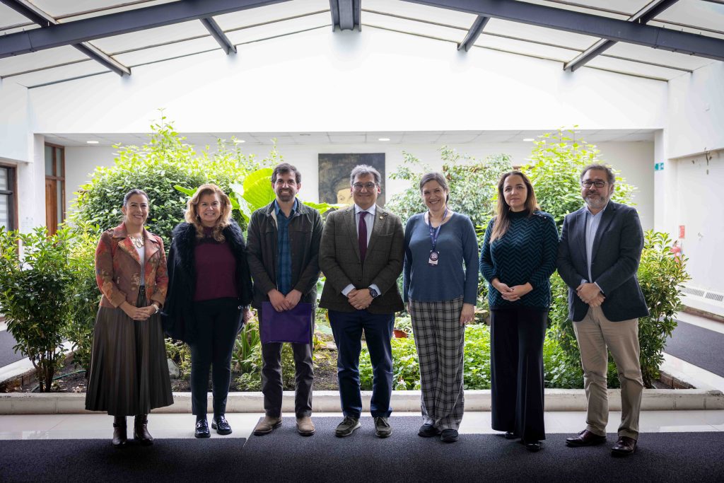 En Rectoría se realizó un sencillo acto donde se distinguió el trabajo que está ejecutando el glaciólogo y académico Camilo Rada. Desde la izquierda aparecen: Melissa Flores, vicerrectora Académica; Mariela Alarcón, prorrectora; Camilo Rada, académico y glaciólogo; José Maripani, rector; Claudia Estrada, vicerrectora de Investigación, Innovación y Postgrado; Anggie Flies, secretaria general de la UMAG y Fredy Cabezas, vicerrector de Administración y Finanzas.